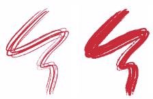 向左移动"厚度"滑块可降低笔触留下的媒材密度。反之则增加画笔密度。 |