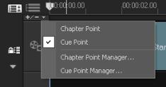 Note: You can also use the Cue Point Manager when adding cue points. SelectAdd and specify the timecode and name of cue for easy identification. Click OK and then Close.